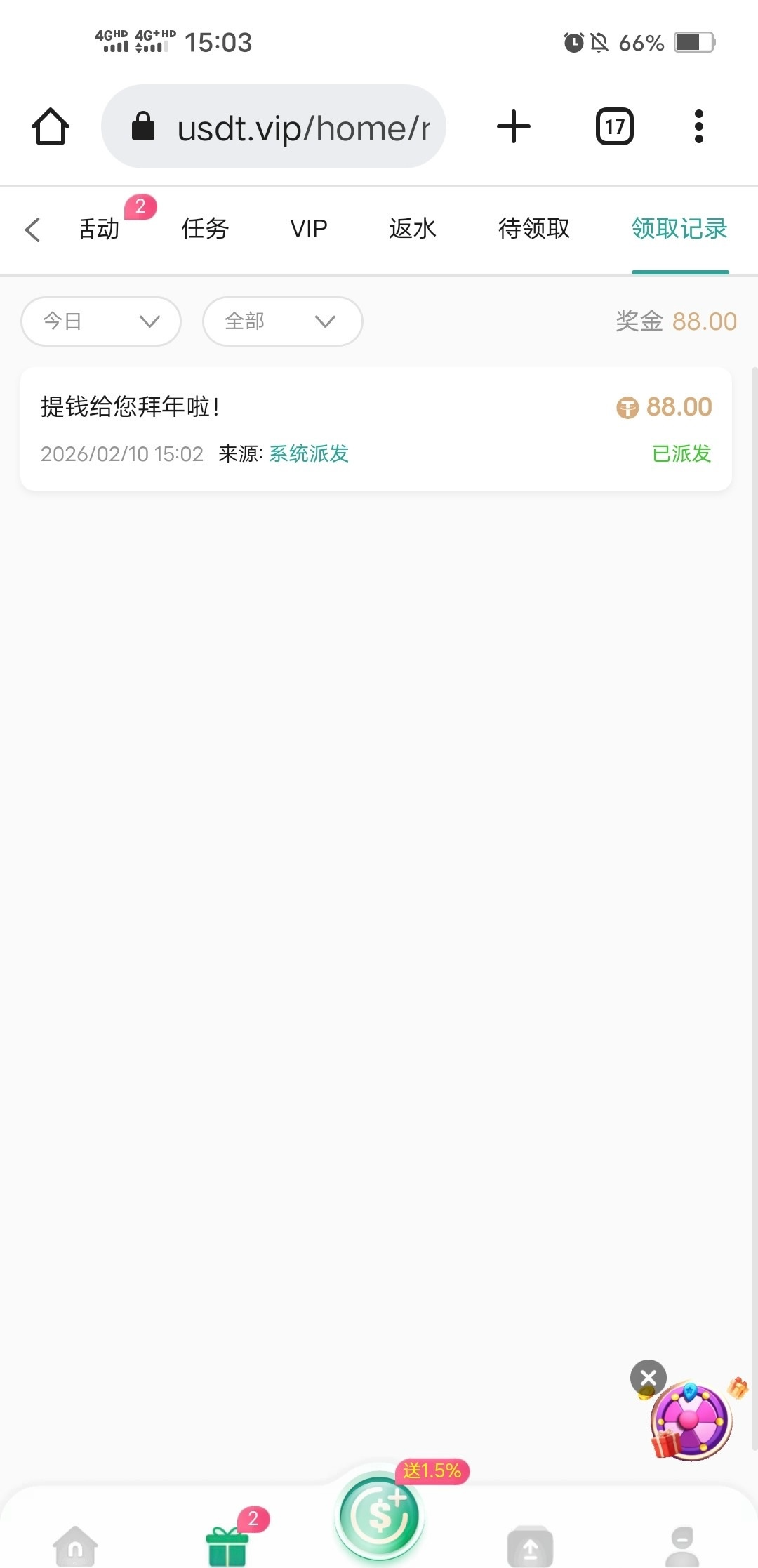u台历史存款回馈 我领了88 玩了一个月左右 玩过的自己去看看 usdt.vip