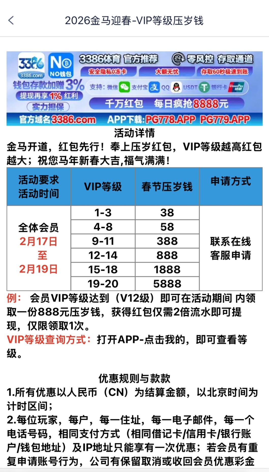 充值vip1及以上领取 38彩金