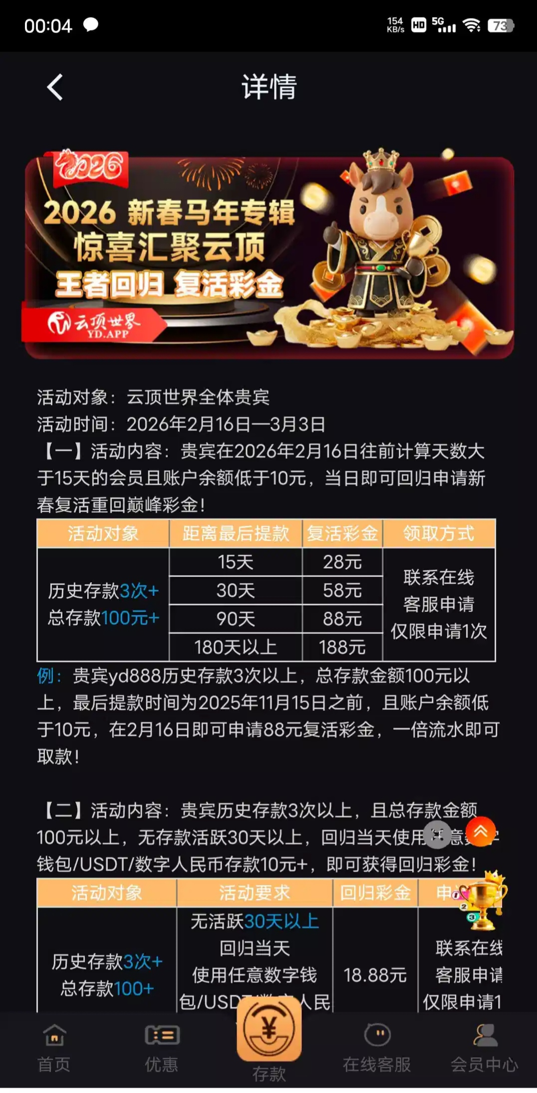 云顶世界回归180天未登录可以领188,我领了58没打出来 勿充值白嫖即可 链接 YD.APP