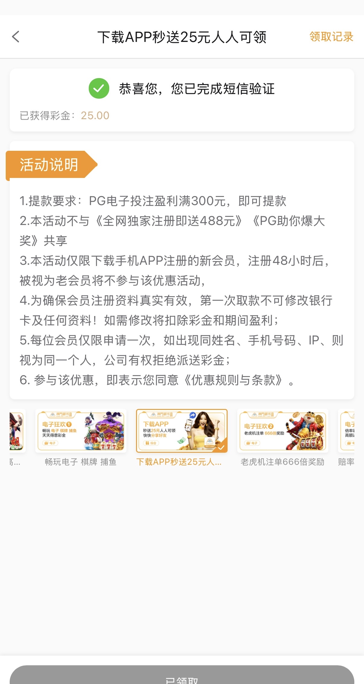 【银河0011】—✅—自助25彩金