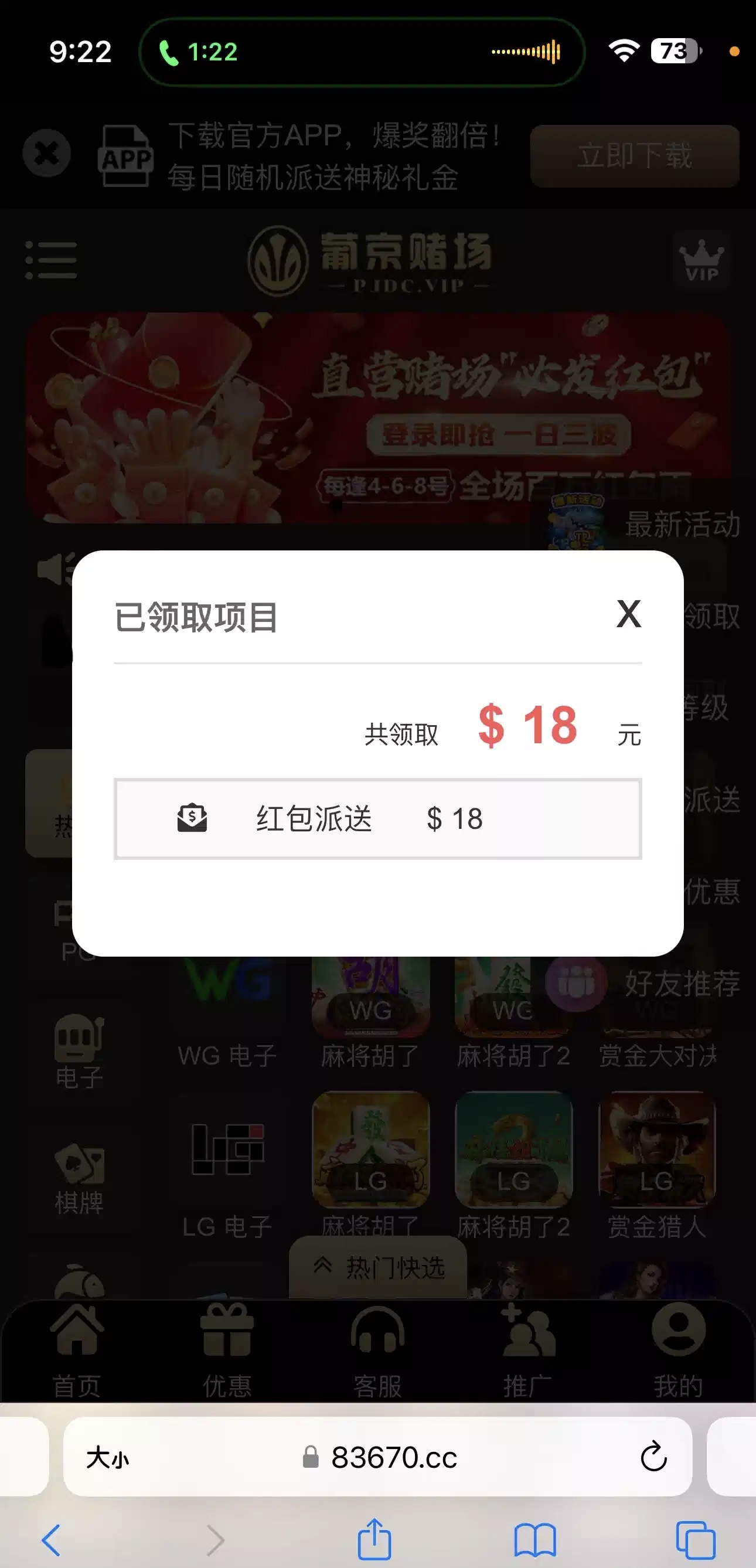 电话回访彩金 我的送了18 有号的登录看看有没有 电话报的网址 836.cc