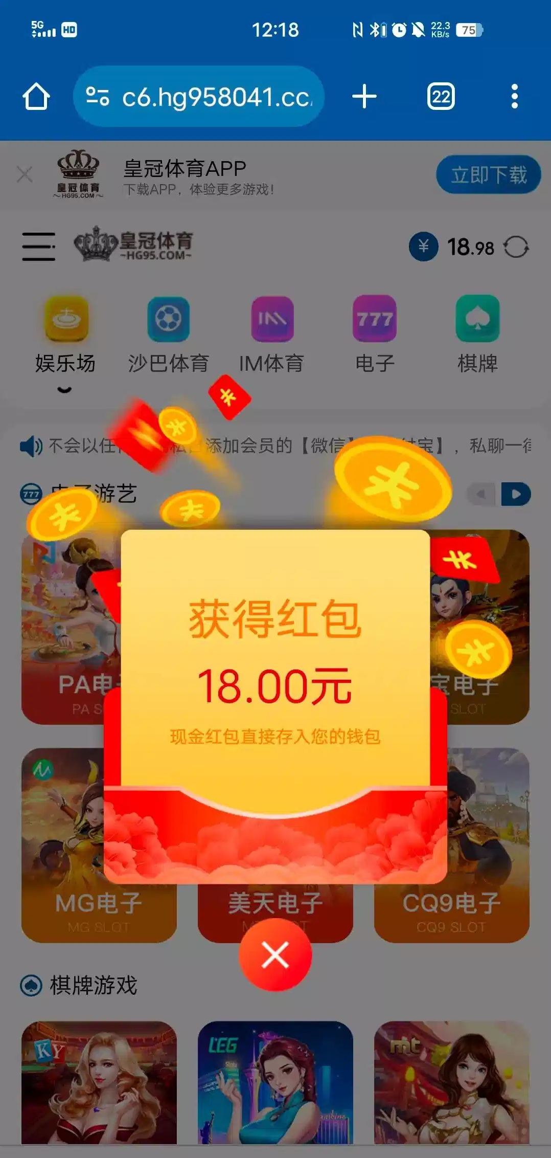 好久没登陆过,之前白嫖过一百,有号的可以去试试,别充值,地址 hg95.com